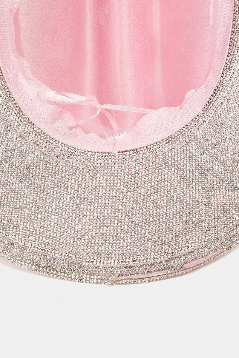 This pave rhinestone trim faux suede hat is a luxurious and stylish accessory that exudes elegance and sophistication. The Pave rhinestone trim adds a touch of glamour and sparkle to the rich faux suede material, making it perfect for special occasions or adding a dazzling touch to your everyday outfits. With its fashionable design and high-quality construction, this hat is sure to make you stand out and feel like a star. Elevate your look with this Pave rhinestone trim faux suede hat and radiate confidence and style wherever you go.
